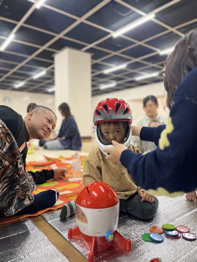 初めて出会った親子どうしでも同じ不安や悩みをもつ仲間であることもあって、ヘルメット治療をしている方へ質問をしたり、ヘルメットを触らせてもらったりしている場面をみて、イベントを開催してよかったな~と